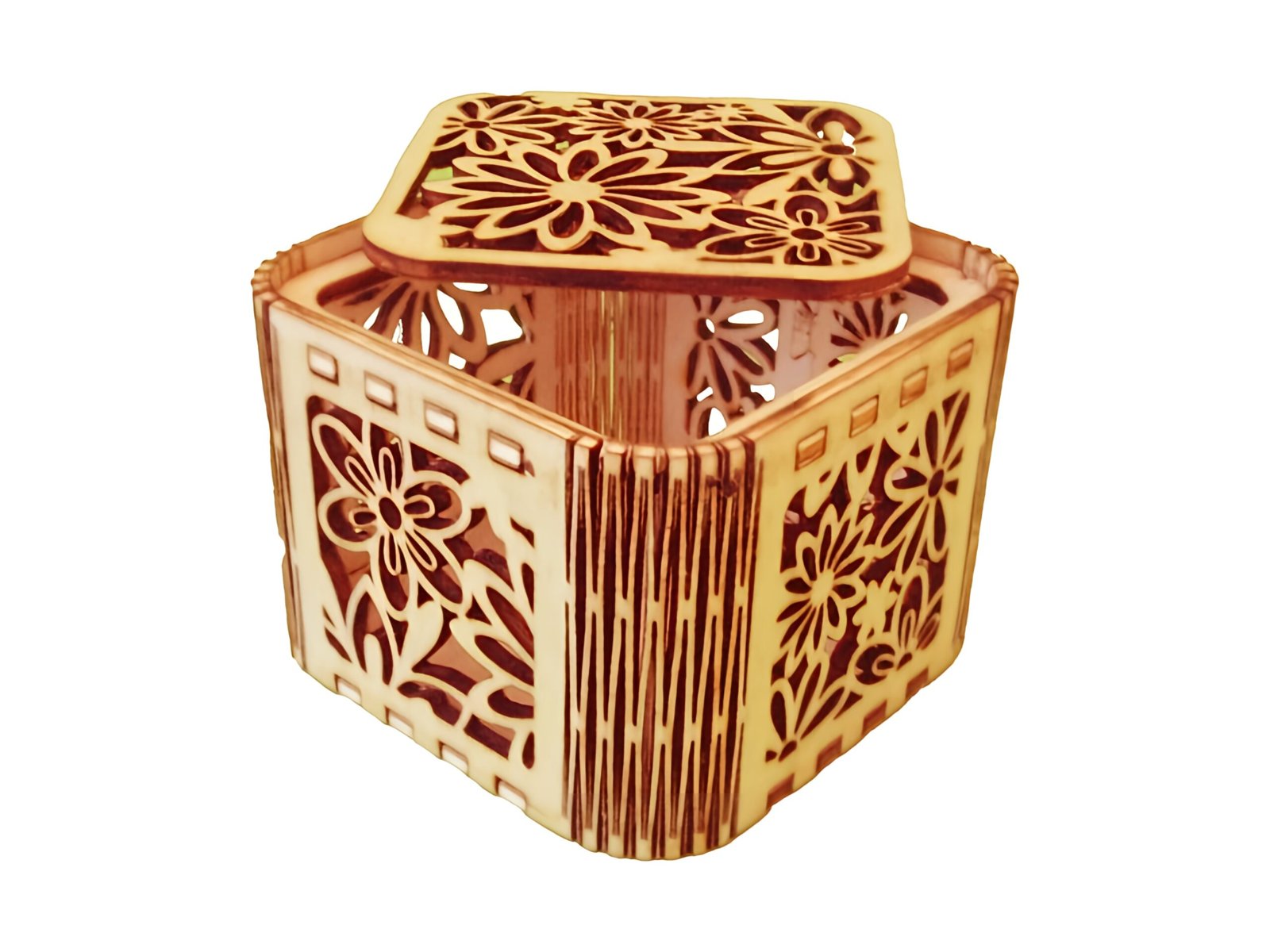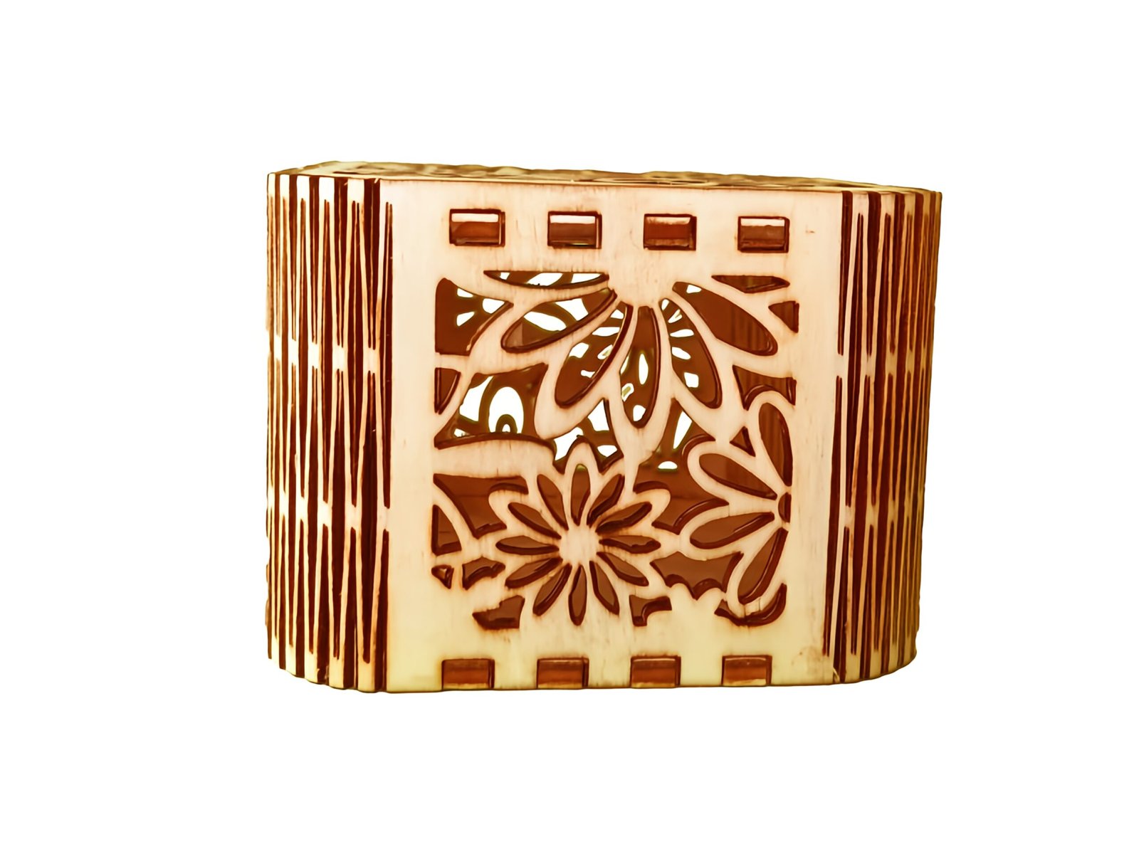 Uniek bloemenpatroon: Een prachtig detail dat past bij onze houten tissueboxen.