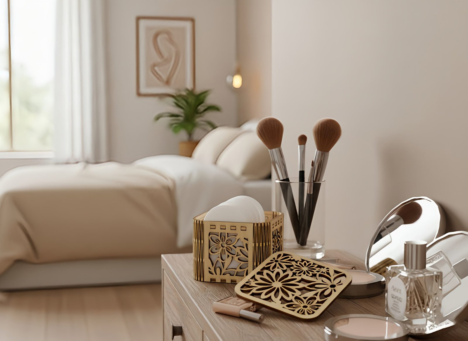 Zoek je een stijlvolle manier om je make-up remover schijfjes op te bergen? Deze houten wattenschijfjeshouder is een essentieel accessoire voor elke moderne badkamer of kaptafel. Omdat de houder is voorzien van een verfijnd laser-gesneden bloemendesign, creëer je direct een serene en luxe sfeer tijdens je dagelijkse verzorging.